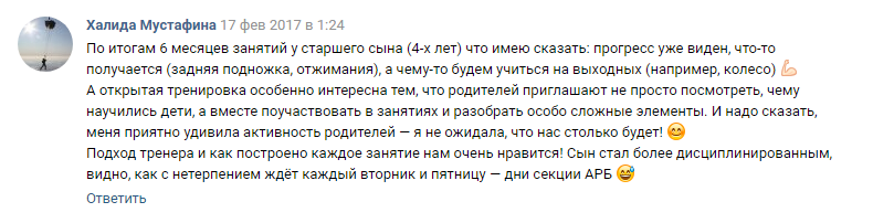 Посмотрите отзывы родителей о наших тренировках
